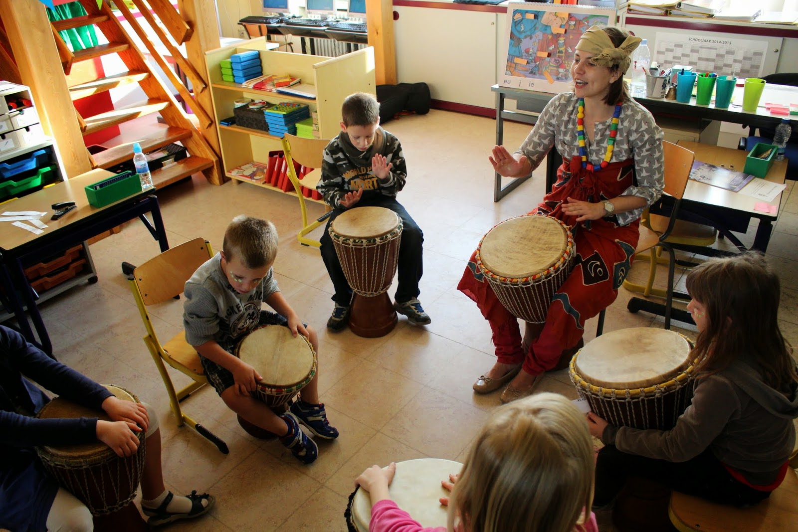 De jongste klassen organiseerden donderdag een Afrikadag. Het vliegtuig (dat speciaal voor ons op school landde) bracht hen daar naartoe. De kinderen dansten, speelden op de djembé, schilderden in Afrikaanse patronen, aten een Afrikaans gerecht, speelden spelletjes, bouwden een instrument en proefden exotisch fruit.
