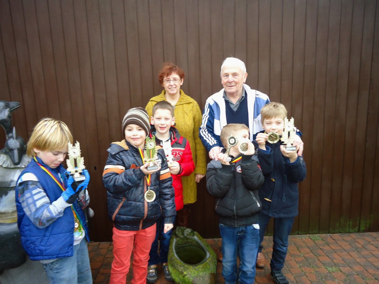 De juf regelde een bezoekje. Op dinsdag 13 januari trokken we naar Kachtem. We mochten de vogeltjes van heel dichtbij bekijken. Pepe legde ons uit wat vinken houden allemaal inhoudt . Pepe Michel en meme Lena nemen allebei al heel lang deel aan wedstrijden met hun vinken. Dat ze al heel veel in de prijzen vielen konden we met onze eigen ogen zien. We zagen een kamer vol trofeeën en medailles. Omdat ze er zoveel hadden, kregen we zelfs elk een trofee en medaille mee naar huis.