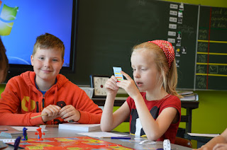 Af en toe begeleiden onze oudste leerlingen, de Stratego's, de jongere klassen bij het spelen van gezelschapsspellen. Verantwoordelijkheid voor de ene, spelplezier voor de ander!