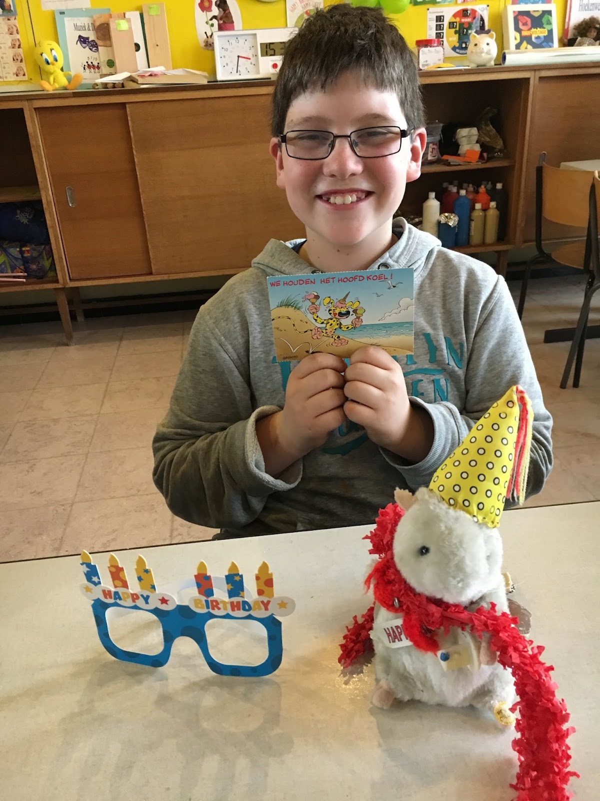 Met trots brengen de Memory's iets mee naar de klas! Wout jarig in de paasvakantie!