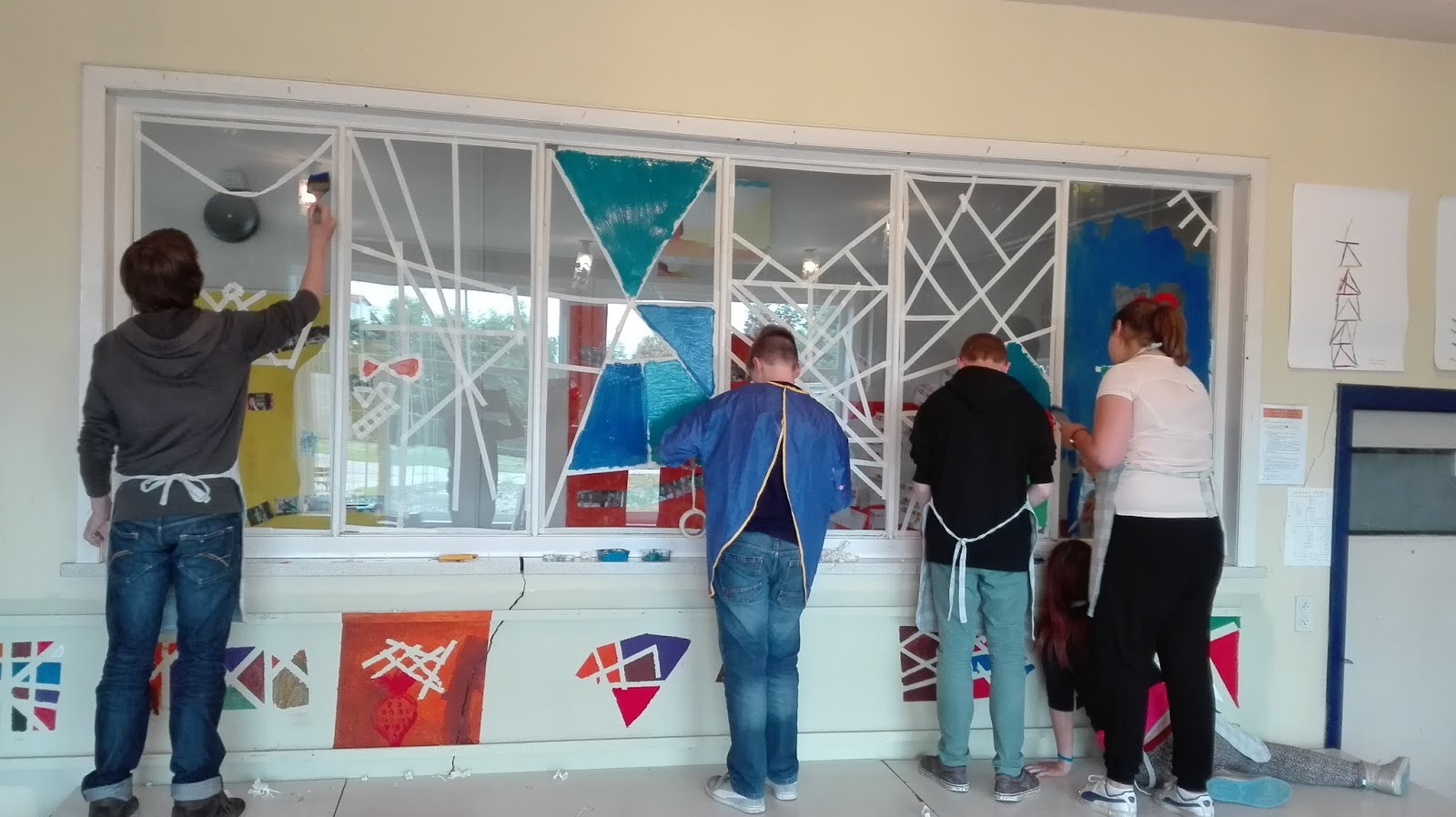 We nemen stilaan afscheid van ons oude schoolgebouw. Aangezien het binnenkort toch gesloopt wordt, kunnen we het evengoed kunstig versieren, niet?