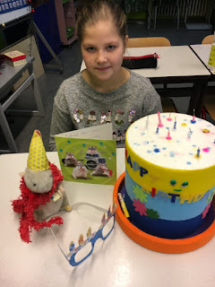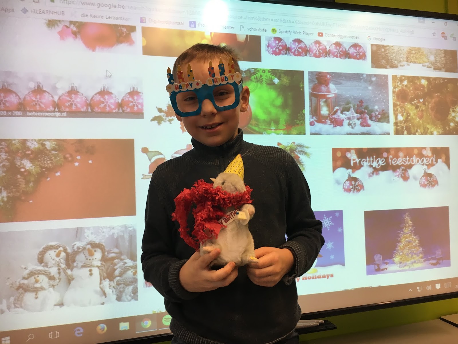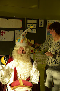 Net voor hij terug vertrok naar Spanje, sprong de Sint nog eens bij ons binnen op school. We zongen voor zijn verjaardag en bedankten hem voor wat hij bracht. Sinterklaas had zelfs even een verjaardagsmuts op!
