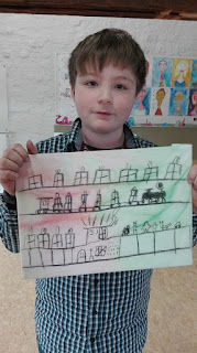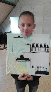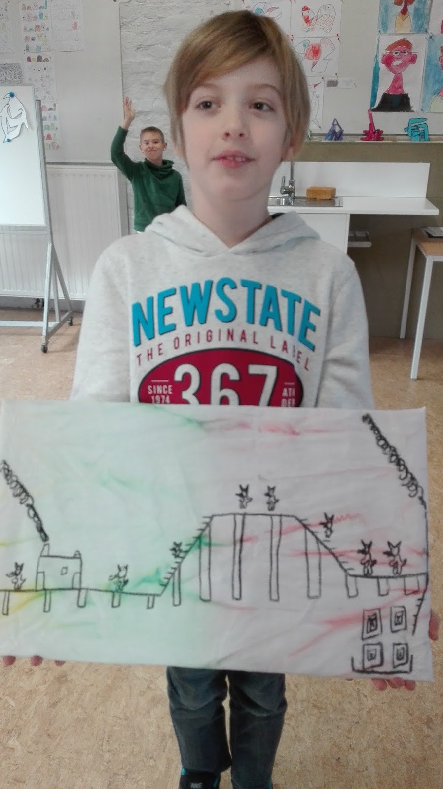 De leerlingen lieten hun fantasie de vrije loop. Ze tekenden met houtskool of een stuk gebatikt doek.