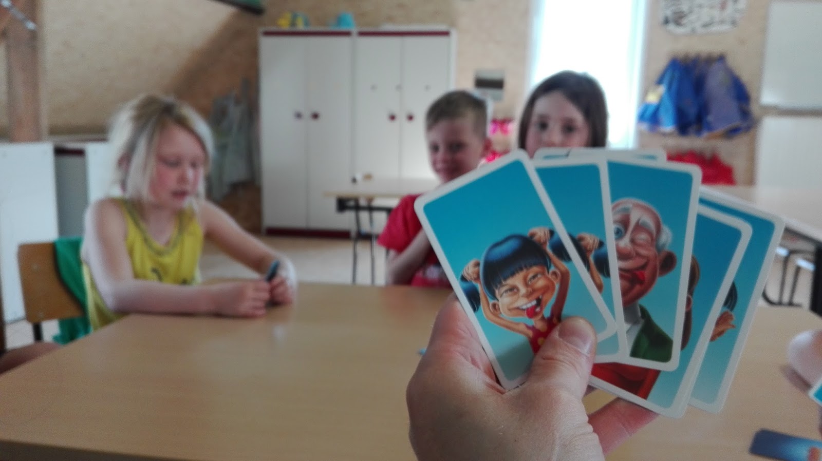 Mimiq is een kaartspel waarbij je gekke bekken moet trekken. Niet altijd gemakkelijk na te doen, maar wel dikke fun! (En het levert ook grappige foto's op... 😁)
