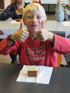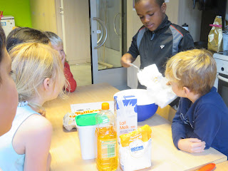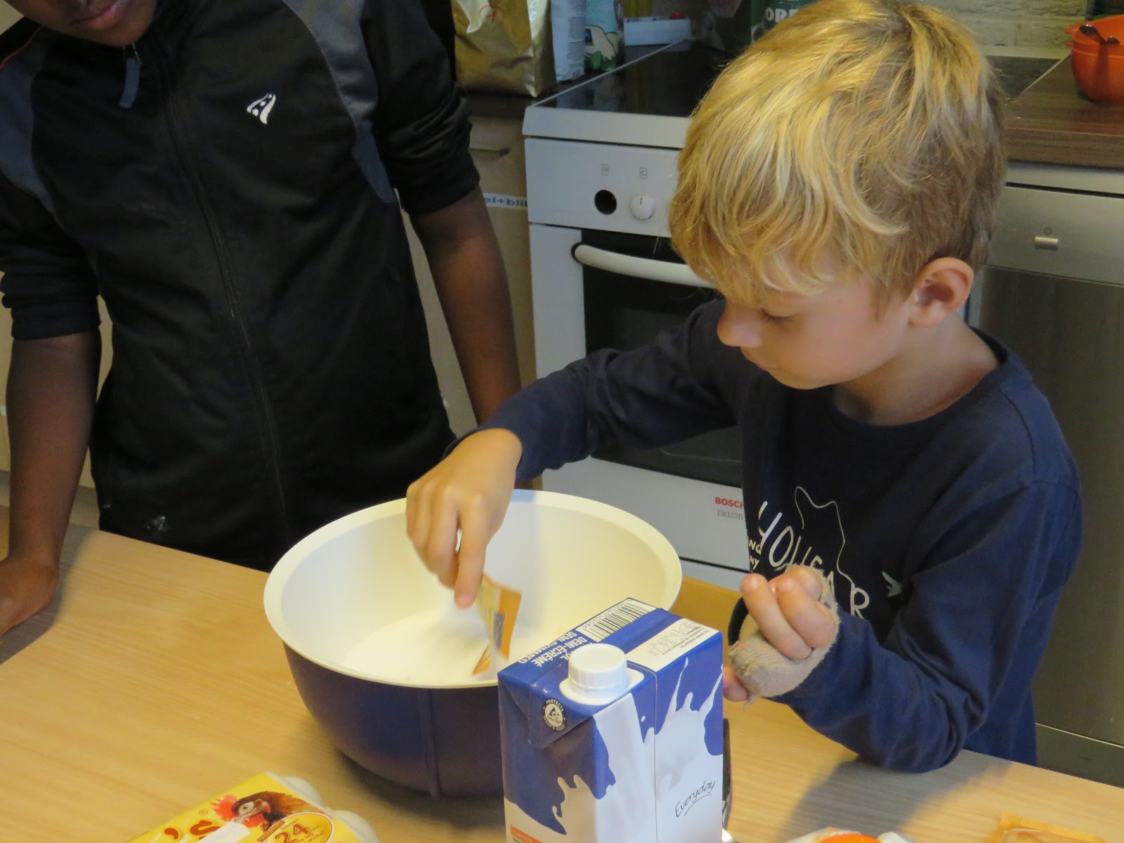 Zelf de ingrediƫnten verzamelen, een recept lezen, mengen, roeren, gieten, cake in de oven, even wachten en...smullen maar!