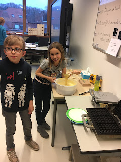 Samen deeg maken, elk om beurt wafeltjes bakken en daarna samen - met de Mikado's - naar het rusthuis om mensen 'warm' te maken om het goede doel te steunen: Kom op tegen Kanker (via de Warmste Week van Studio Kontrabas!)