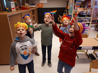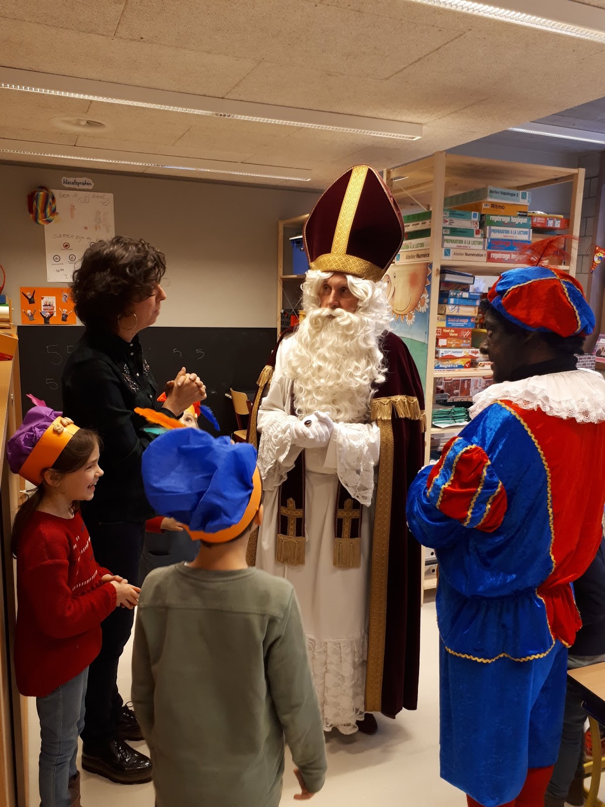 Gisteren kwam hij ook op bezoek in de klas, we zaten allemaal flink op de stoel! We hebben een liedje gezongen voor zijn verjaardag en hij was heel blij! Zwarte piet deelde veel picnicjes uit, dat vonden we heel leuk (en lekker!)