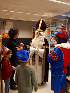 Vandaag was een heel bijzondere dag, namelijk de verjaardag van Sinterklaas! Toen we vanmorgen in de klas kwamen, lagen er cadeautjes op de tafel! De sint heeft een mooie kassa gebracht voor onze nieuwe winkel en boetseerklei en een machientje voor de klei! We mochten er mee spelen van de juf!