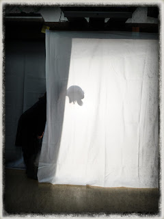 Nu de Domino's werken rond 'Licht en donker', haalden we het spotlicht en het witte doek boven voor wat schimmenspel.