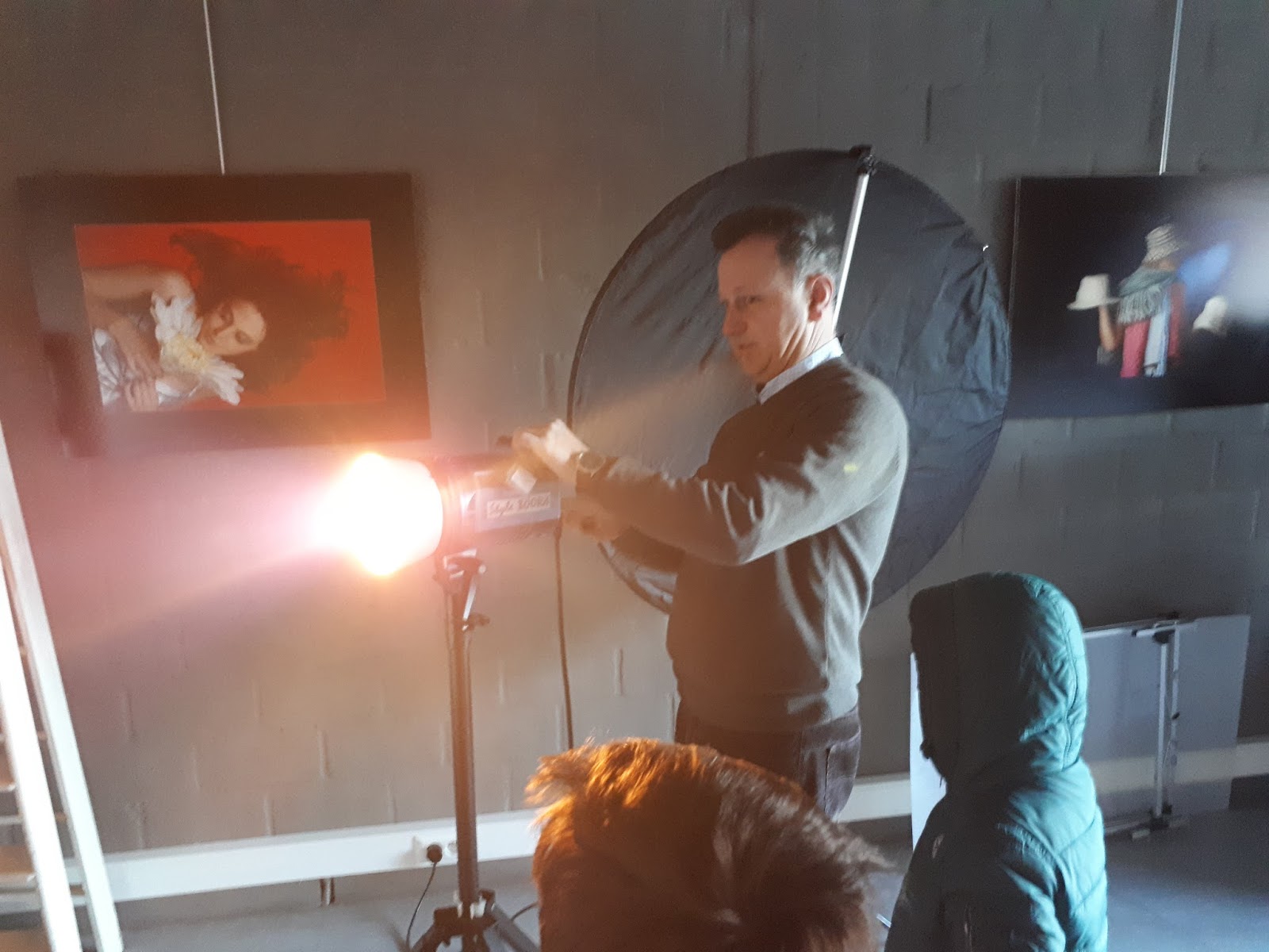 Hij toonde ons zijn fotostudio en alle attributen dat hij gebruikt, zoals lichtschermen,
