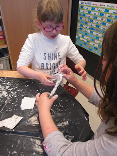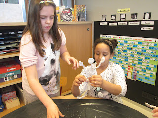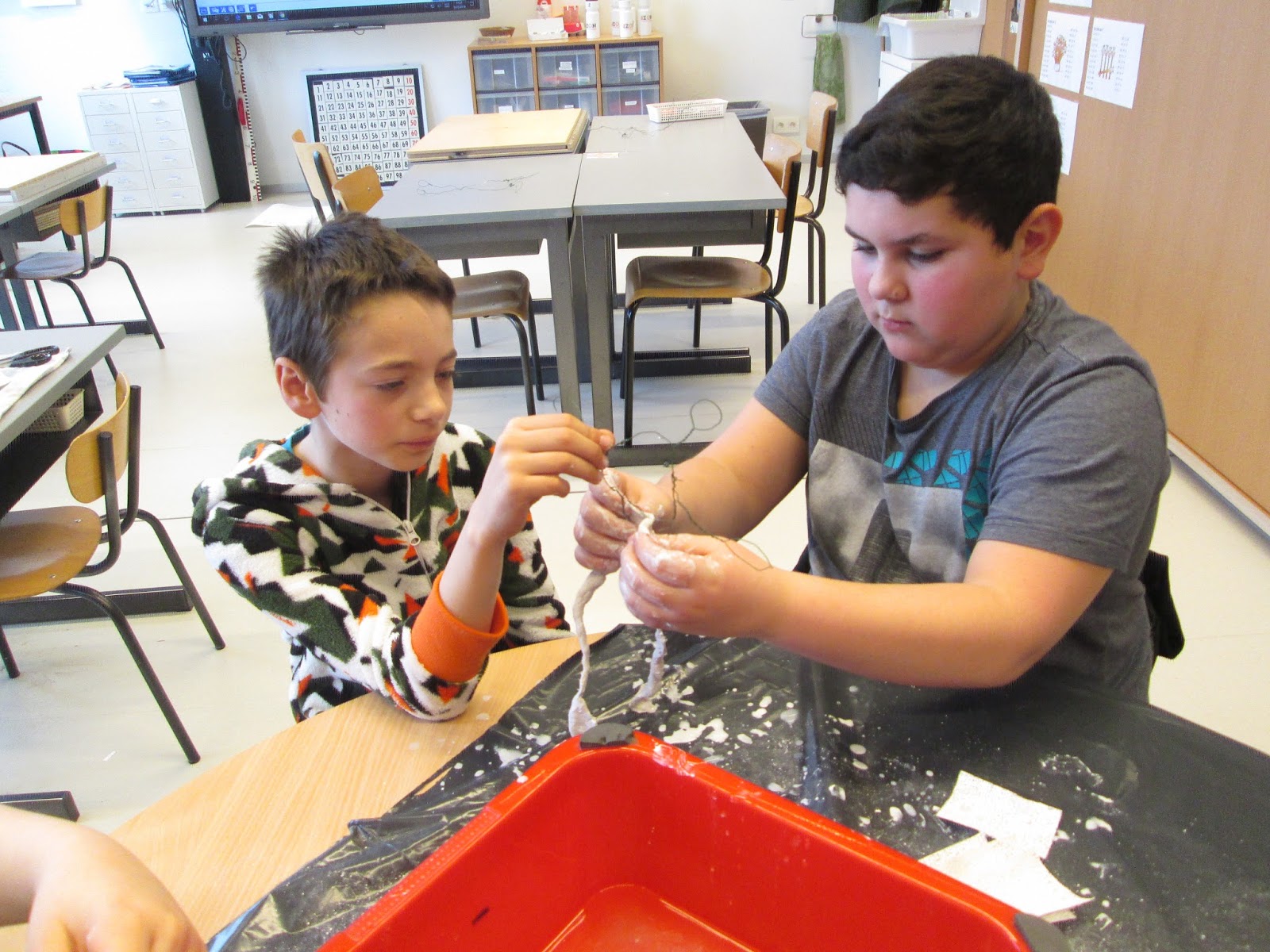 Donderdag werden we opgewacht door een echte robot in de bib! Was me dat schrikken zeg! Hij toonde ons de weg tot bij de tafel van Professor Kweetal. We deden allerlei proefjes met de professor.We konden ons haar recht zetten met een ballon en wist je dat water en olie niet mengen...!?