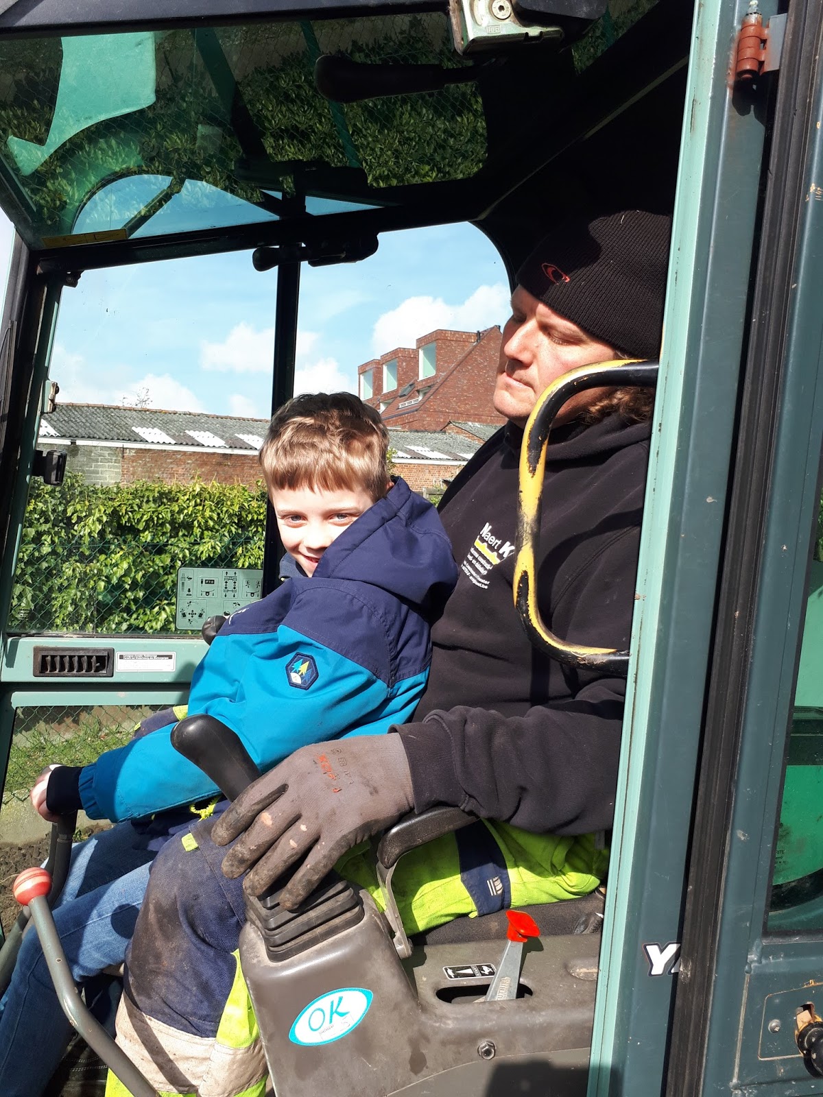 Groen is deze maand ons lievelingskleur en ook ons wo-thema! Daarom gingen we eens een voormiddag helpen met de groendienst van Ingelmunster. We mochten meehelpen met de aanleg van volkstuintjes. We staken de handen uit de mouwen en vervoerden haksel in de kruiwagen, harkten en leerden met de kraan werken! Het was een leerrijke en supertoffe voormiddag! Bedankt aan de mensen van de groendienst!