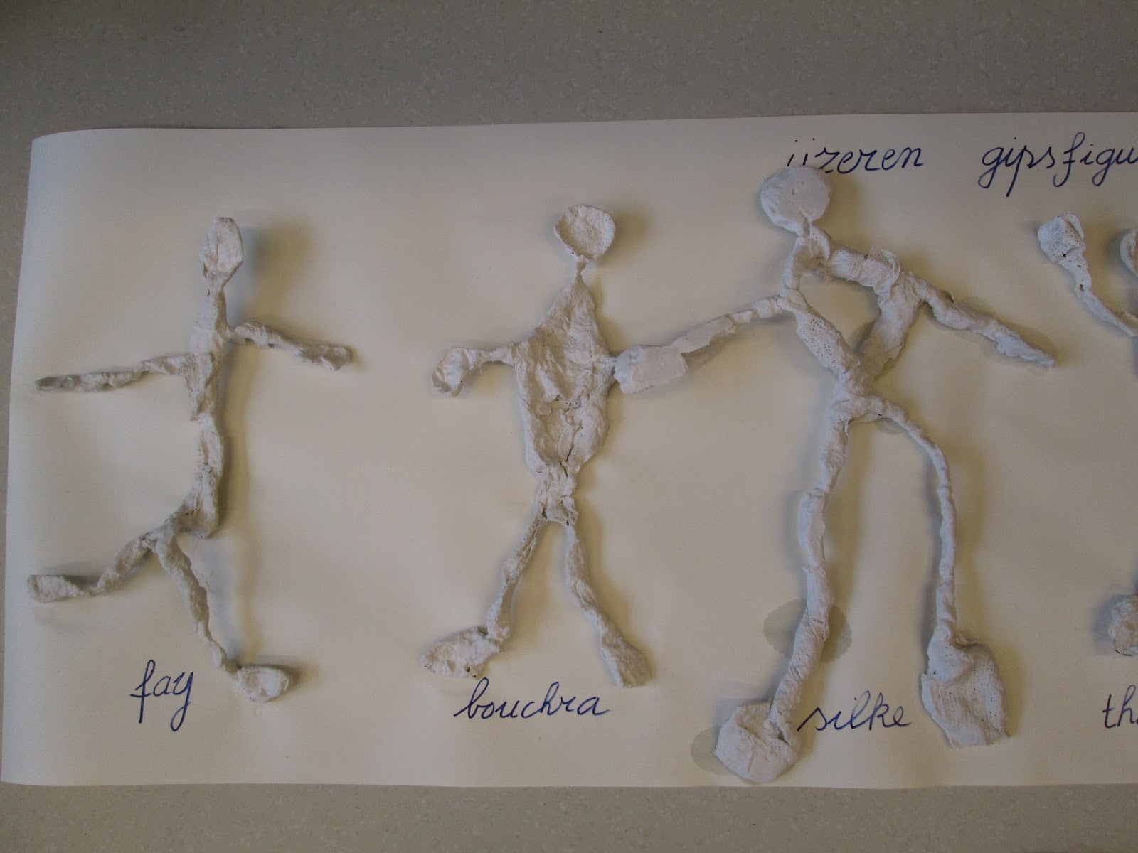 Eerst maken we een figuur in ijzerdraad om die erna met gips te omwinden.