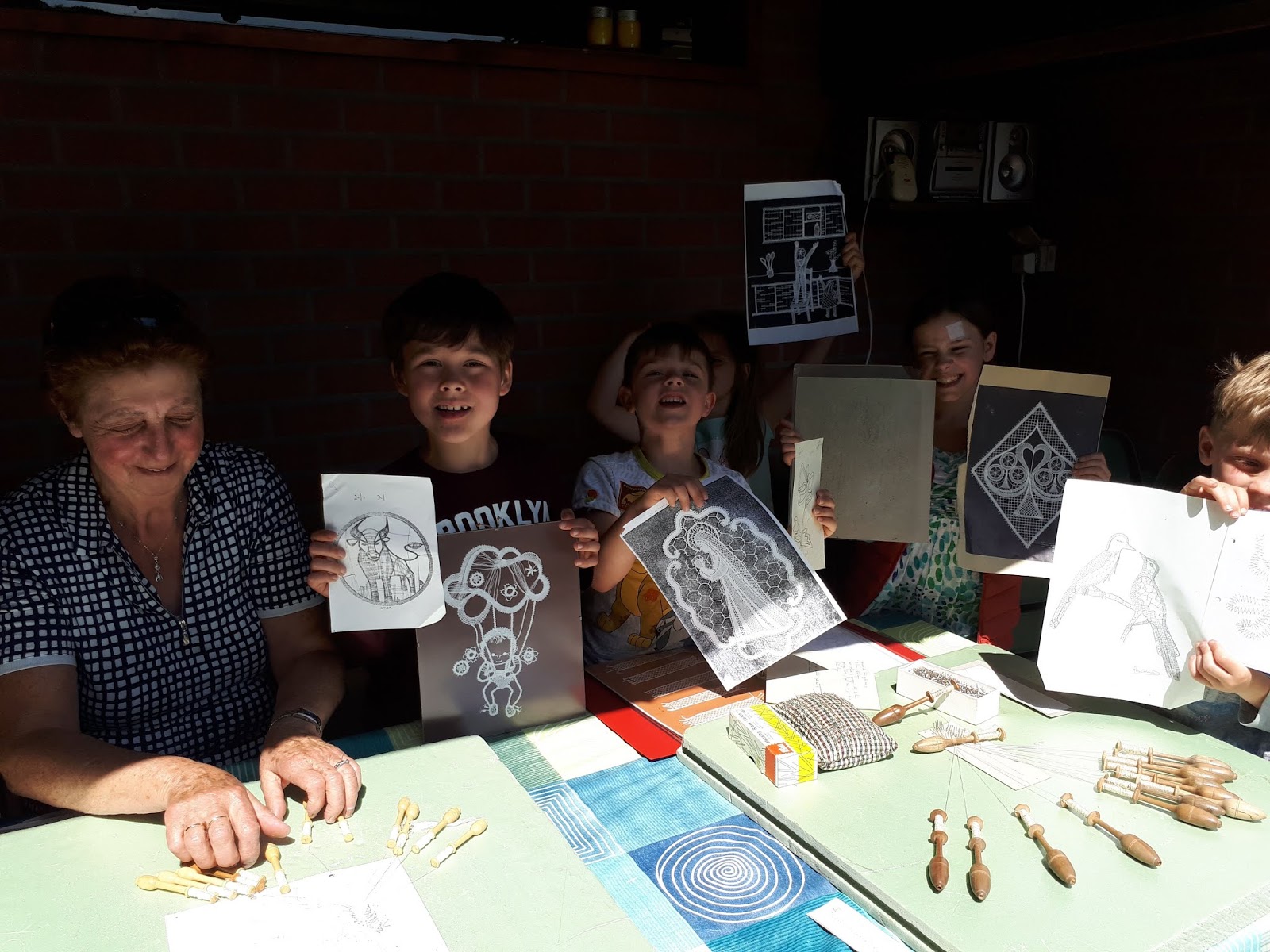 Ook beroepen zijn veranderd! Een mandenvlechter, klompenmaker, tonnenmaker, .. zijn beroepen die nu niet meer bestaan! Ook kantklossen is iets wat we niet meer kennen en vroeger ook een beroep was ! We gingen vrijdag op bezoek naar Gisèle, de mama van juf Greet die kan kantklossen en ons er alles over vertelde. Ze leerde kantklossen toen ze klein was op school en was later lid van de kantklosclub ' t Klosje' van Ingelmunster. Ze toonde ons hoe ze garen op een klosje windt en leerde ons de linnenslag! Dat was heel moeilijk! ze toonde ons ook verschillende werkjes dat ze zelf gemaakt had! Vooral het poesje vonden we heel mooi! Bedankt Gisèle voor de interessante uitleg!