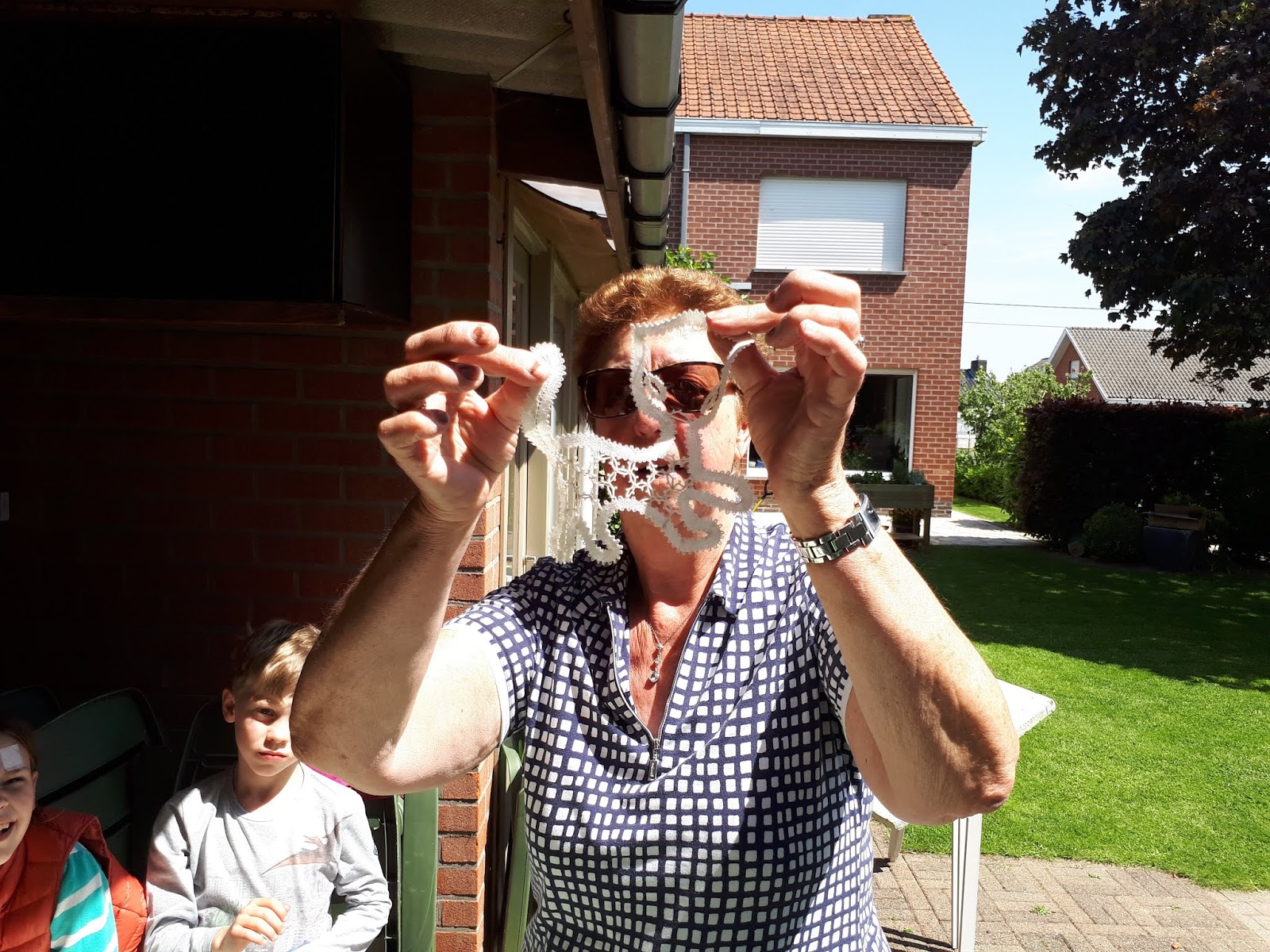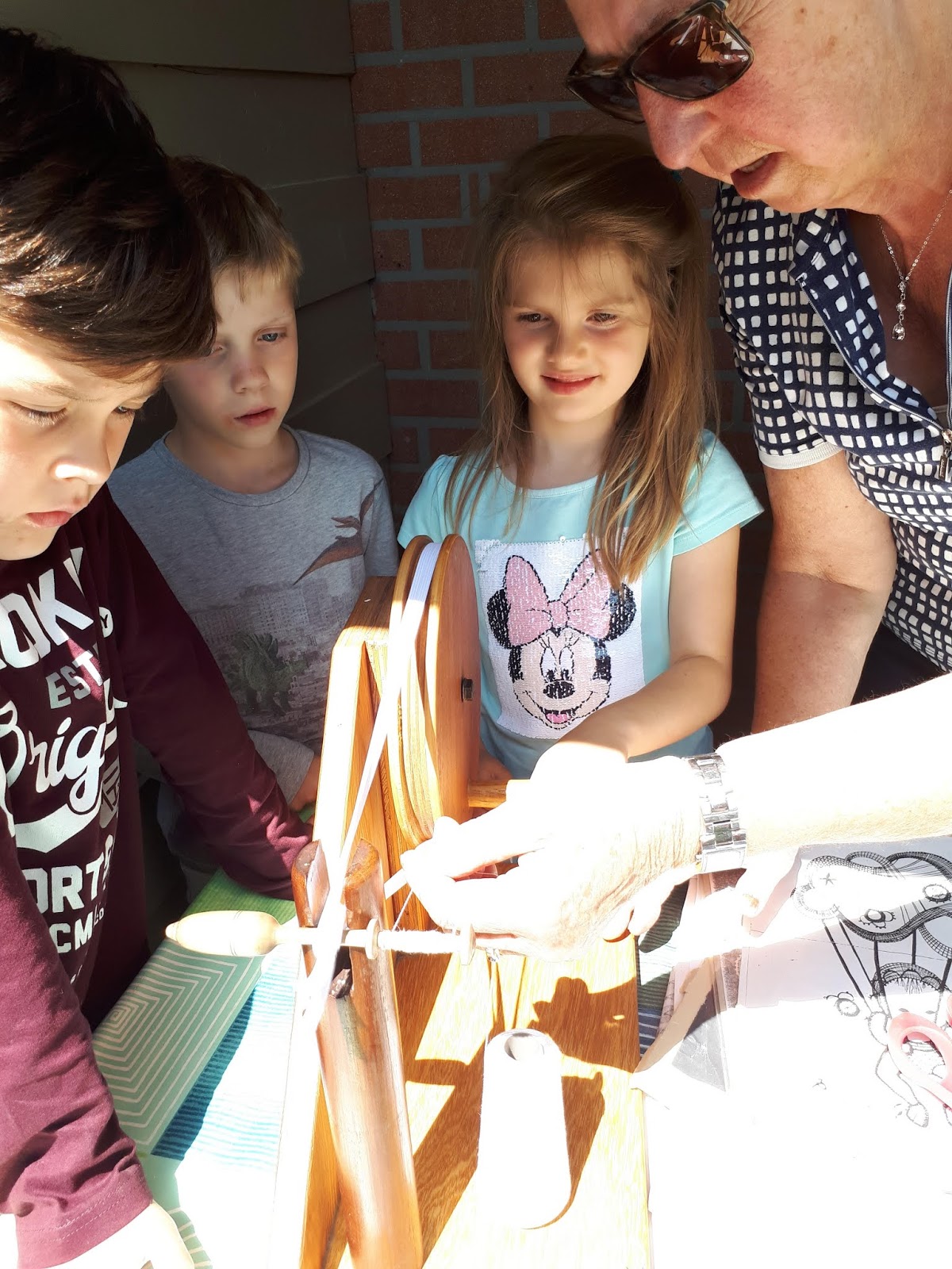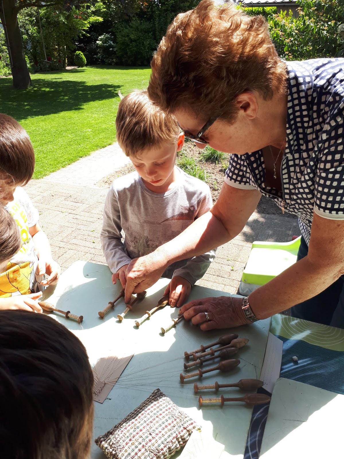 Ook beroepen zijn veranderd! Een mandenvlechter, klompenmaker, tonnenmaker, .. zijn beroepen die nu niet meer bestaan! Ook kantklossen is iets wat we niet meer kennen en vroeger ook een beroep was ! We gingen vrijdag op bezoek naar Gisèle, de mama van juf Greet die kan kantklossen en ons er alles over vertelde. Ze leerde kantklossen toen ze klein was op school en was later lid van de kantklosclub ' t Klosje' van Ingelmunster. Ze toonde ons hoe ze garen op een klosje windt en leerde ons de linnenslag! Dat was heel moeilijk! ze toonde ons ook verschillende werkjes dat ze zelf gemaakt had! Vooral het poesje vonden we heel mooi! Bedankt Gisèle voor de interessante uitleg!