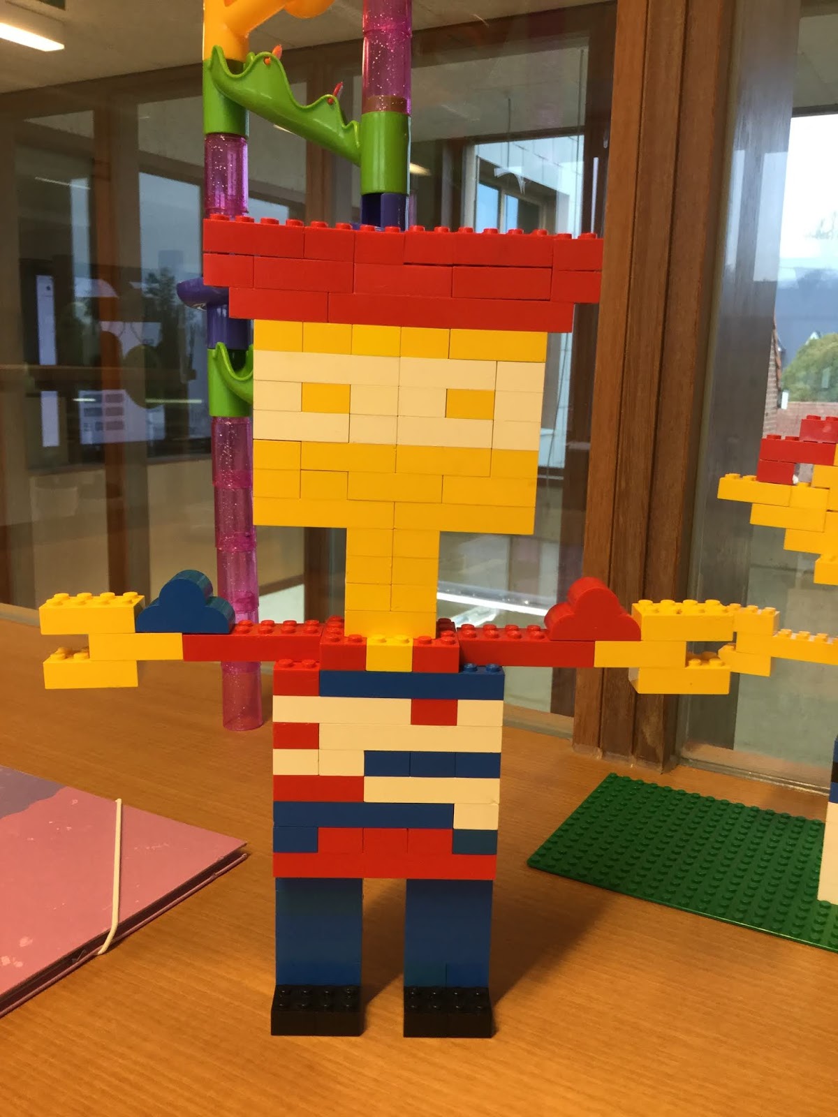 We nemen het hoofd van leerling 1, het lichaam van leerling 2, de benen, armen, enz. van nog andere kinderen. Wat krijg je dan?