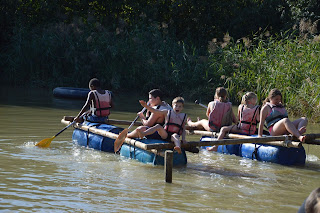 Een goedgevulde, tweede dag. Heel wat sportieve en uitdagende activiteiten: muurklimmen, een touwparcours, deathride, speleobox en vlottenbouw voor de oudsten.