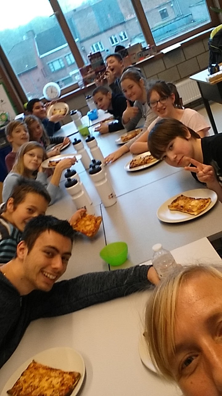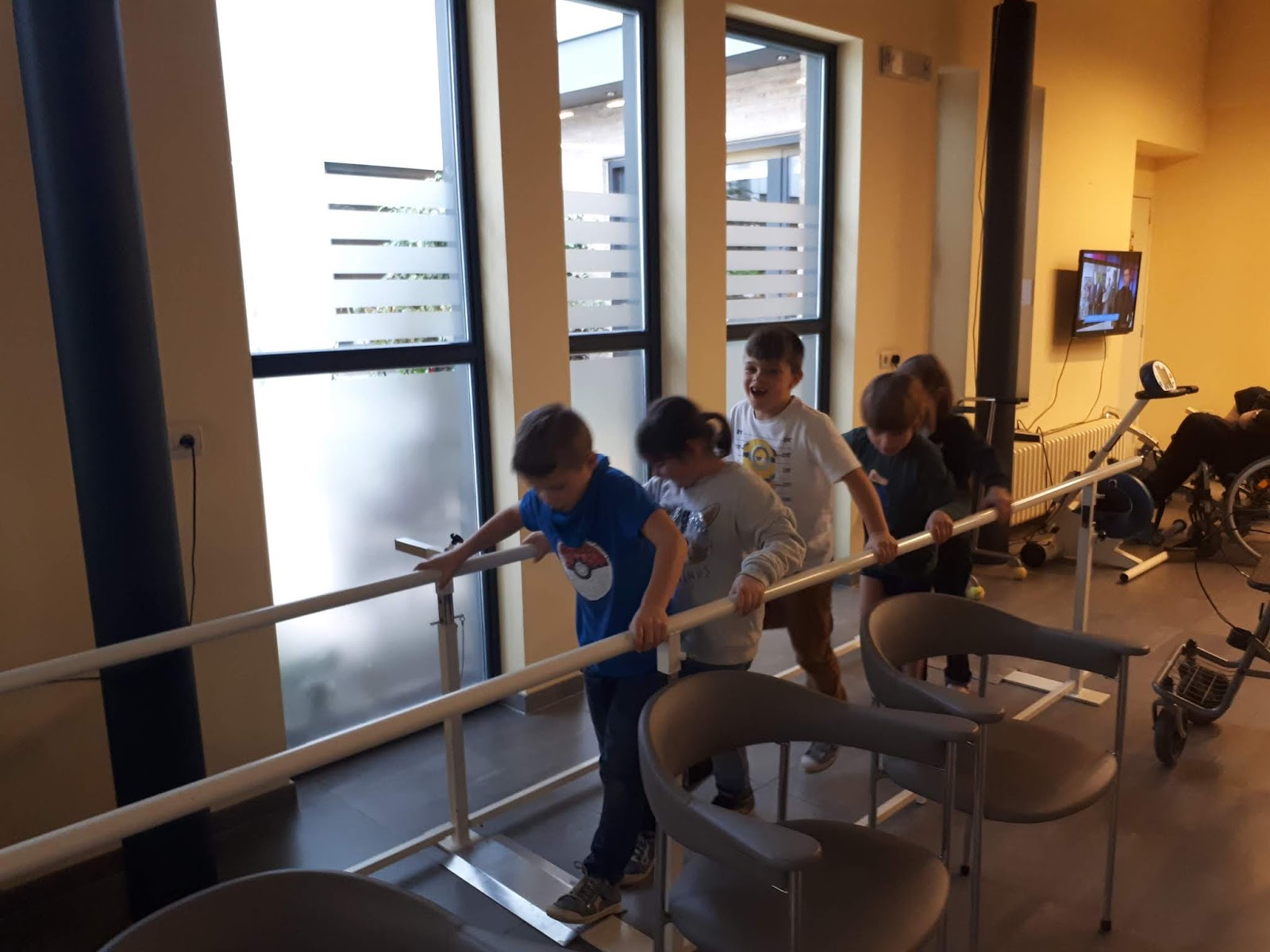 We zagen een bad dat op en neer kon en waar de mensen in konden met een stoeltje! We zagen ook een kapsalon, een heeeeeel grote keuken, de kapel waar mensen oude liedjes zongen en een mevrouw die de krant voorlas aan de oude mensen. We mochten ook in de kine ruimte allerlei oefeningen doen: fietsen, arm-en beenspieroefeningen,.. wat is het daar leuk!We hebben ook een applausje gegeven aan de oudste mevrouw van het rusthuis; die is 102 jaar oud!!!!