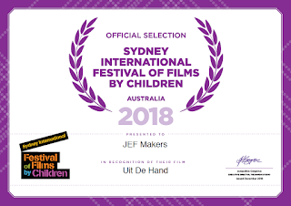 Vandaag berichtte J.E.F. (de organisatie acher het jeugdfilmfestival en het vroegere Making Movies) dat het filmpje 'Uit de hand' van de Strategomeisjes van vorig jaar, vertoond werd op het kinderfilmfestival van Sidney.