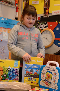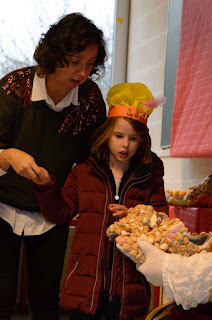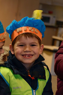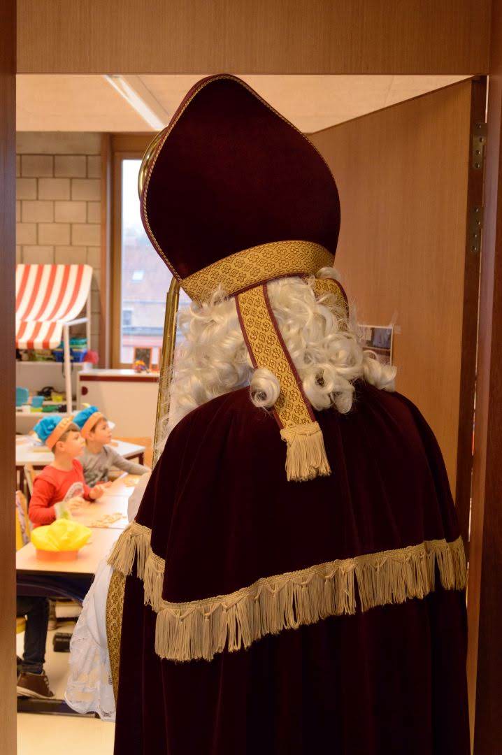 Voor zijn vertrek naar Spanje, wipte de Sint nog even bij ons binnen. Deze nacht al kwamen Sint en Piet langs met geschenkjes. Daarom zongen we met plezier nog een lied voor zijn verjaardag!
