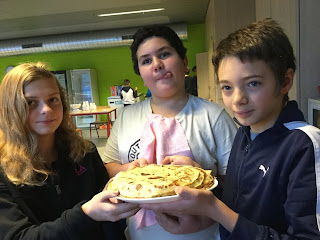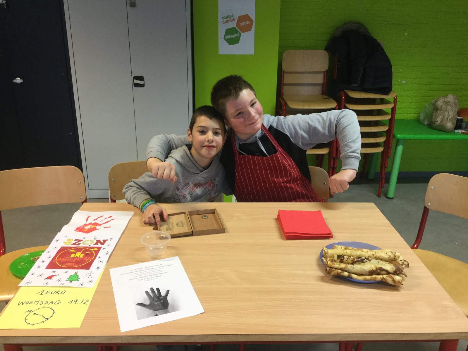 De memory's steken de handen uit de mouwen en bakten zelf verse pannenkoeken. Ze verkochten deze voor de warmste week. Met dank aan juf Carla, juf Hilde en juf Mounia voor het initiatief.