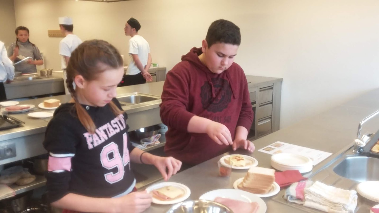 Hayley en Daho zijn lekkere croque monsieurs aan het maken.
