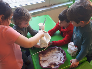 We mochten eieren splitsen (wat bijna lukte), bloem zeven, wegen en mixen!