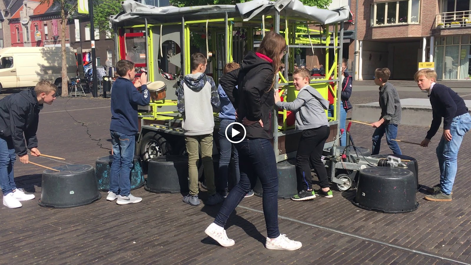 De Stratego's mochten experimenteren - op een speelse manier - met geluiden met de muziekmobiel!