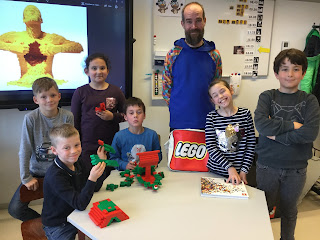 Vandaag kregen wij, de Lego's, een echte legobouwer op bezoek! Giovanni Seynhaeve uit Izegem kwam ons een workshop lego geven. Dit in naloop van de actie 'music for life' van Studio Kontrabas. Hij vertelde ons over de uitvinder van lego, toonde ons enkele bouwwerken van lego en legde enkele bouwtechnieken aan ons uit. De 'oohhh's 'een 'aaahhh's' klonken door de klas bij het zien van bouwwerken die Giovanni reeds maakte. Een sprookjeskasteel, Star Wars, het nagebouwde Eperon D'or van Izegem zijn slechts enkele van zijn bouwsels. Daarna mochten we zelf aan de slag. We werkten rond het thema VAKANTIE, we bouwden vakantiehuisjes, een valies, een boot,... . Kortom, je kan ALLES maken met lego! Als je maar genoeg blokjes, creativiteit, geduld en tijd hebt! Een inspirerende namiddag! Bedankt Giovanni!
