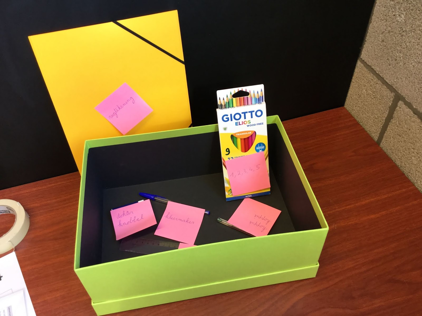 Wat heb je nodig in de pennendoos? Een potlood, een gom, kleurpotloden...
