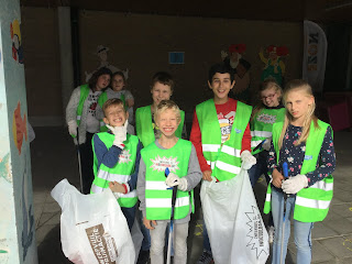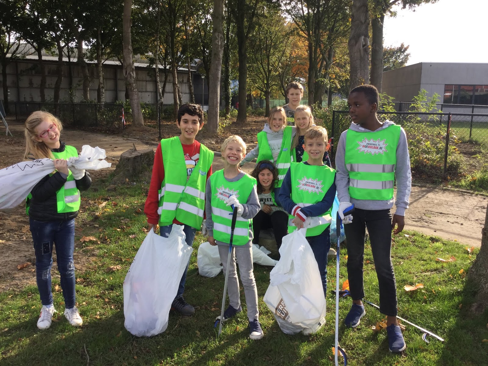 We gingen met grijpstokken en handschoenen aan aan de slag en ruimden de 2 speelplaatsen helemaal op.