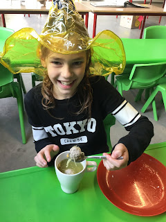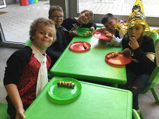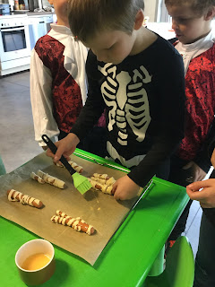 Helemaal klaar om snotneuzensoep met spinnen en mummie's klaar te maken en lekker op te smullen! Laat Halloween maar komen!