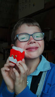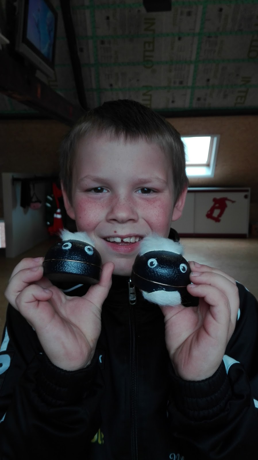 We kregen per 2 een eierdoosje met foto's van wat we moesten verzamelen: een kastanje, bolster, beukenootje, vliegertje van esdoorn, stukje mos en eikel!