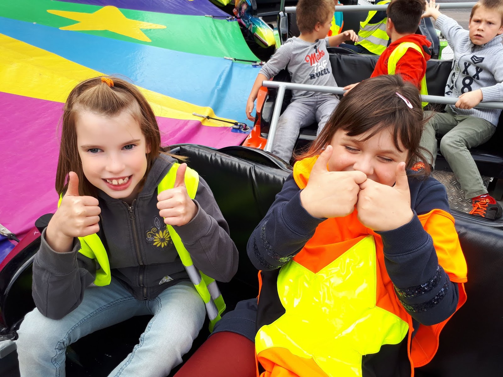 We mochten 2 keer op de rups en 2 keer op de botsauto's!