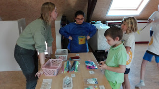 Daarna speelden we samen enkele oude spelletjes van in oma's tijd zoals: tollen, sjoelbakken, knikkeren, kegelen,.. De grootouders konden ook hier hun hartje ophalen!