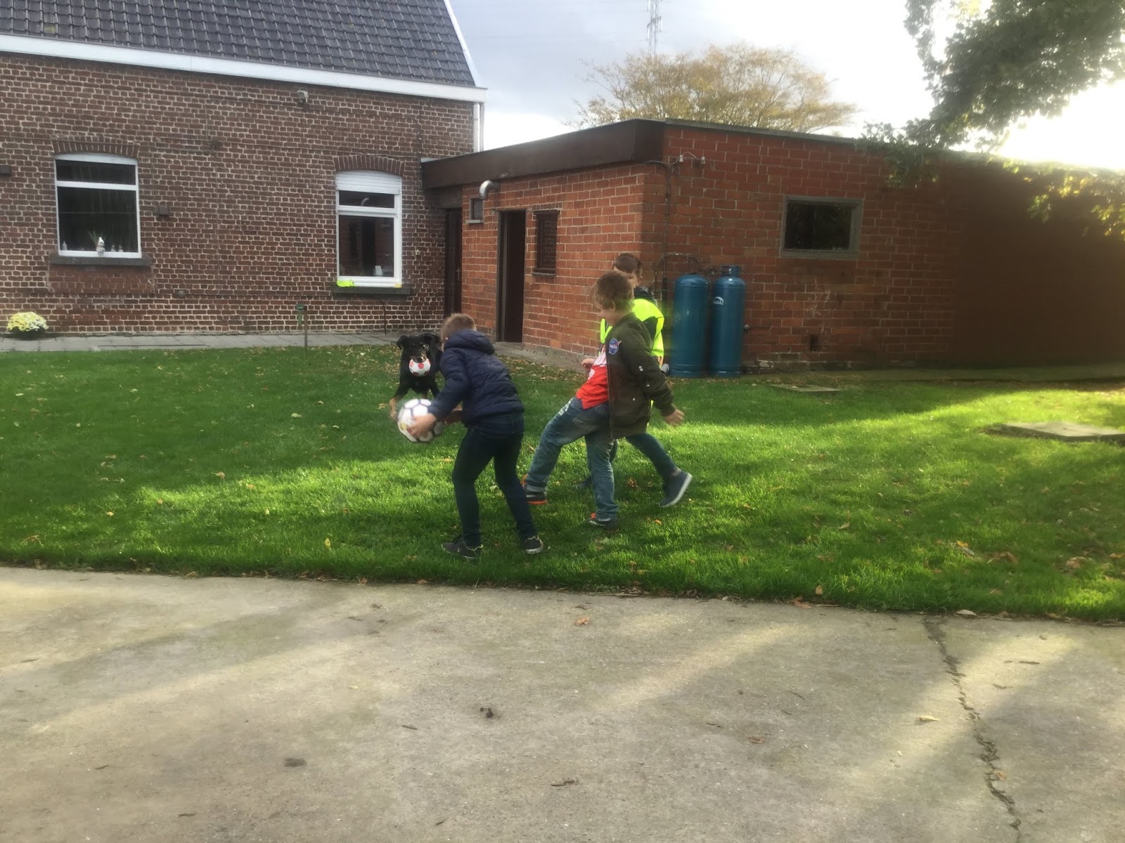 Maar het allerleukste was...smullen van een gezonde appel en spelen met de lieve hond Bassie!!!
