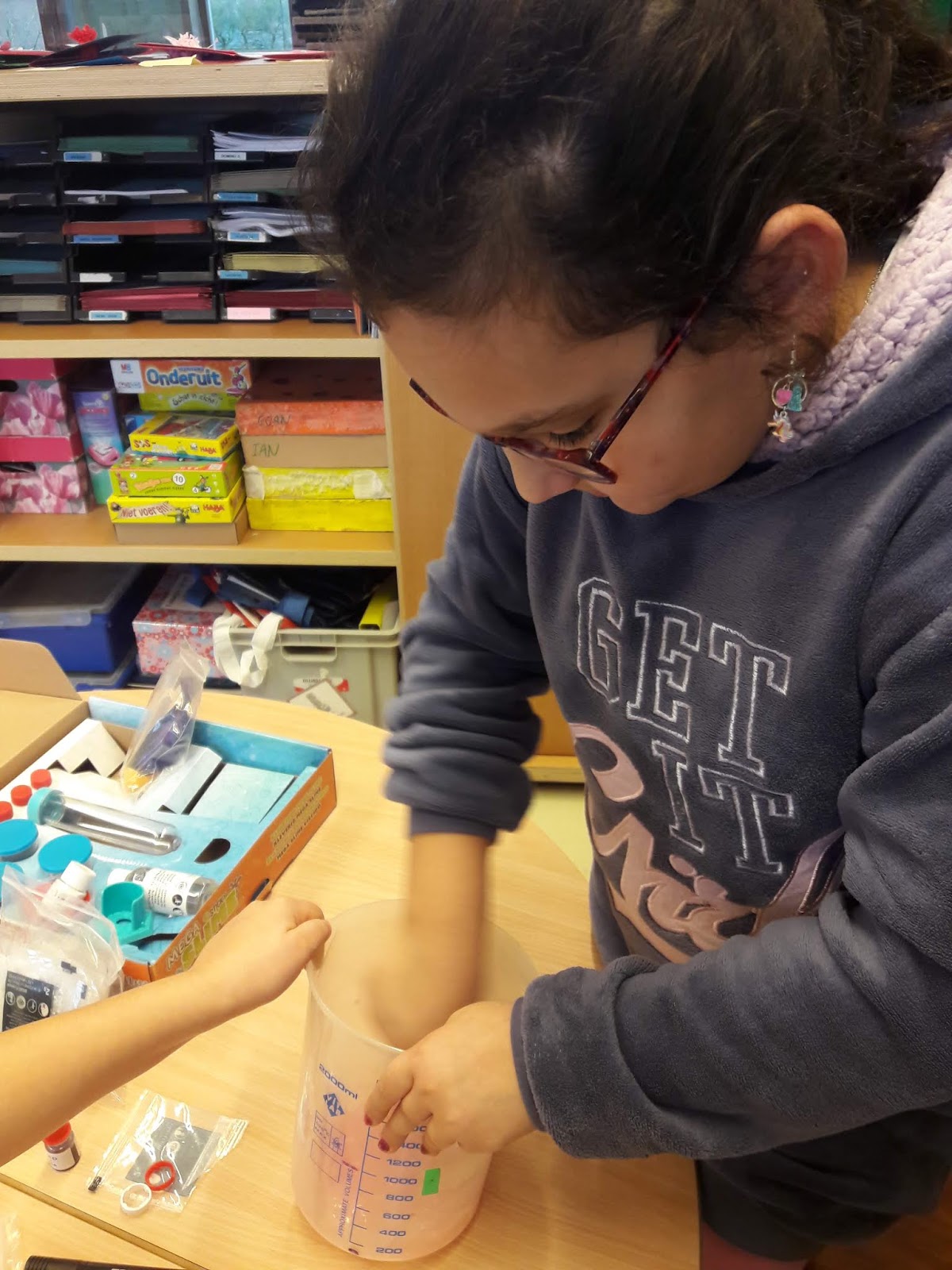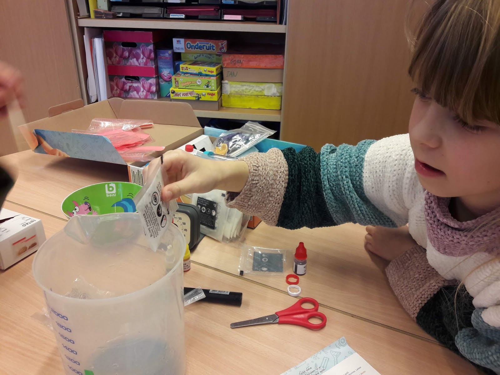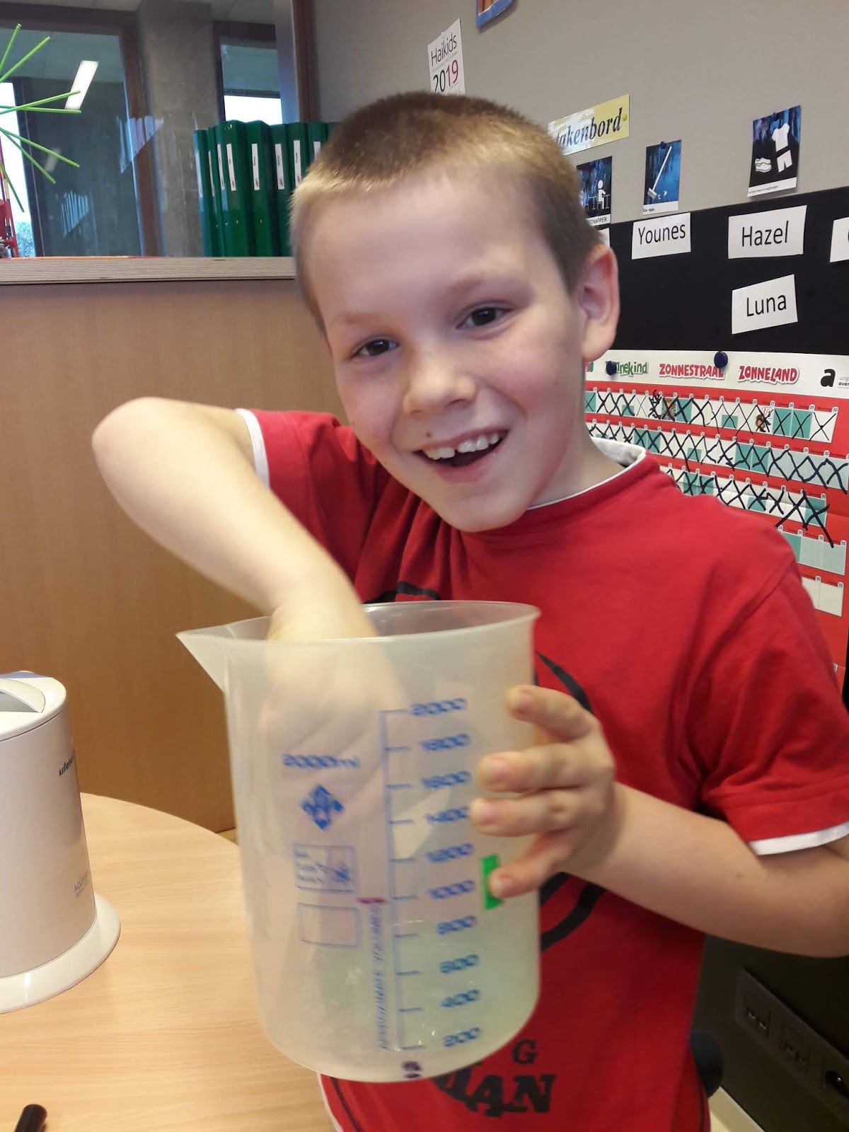 Als echte wetenschappers gingen we dan ook aan de slag in ons laboratorium om slijm te maken.