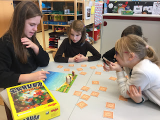 Tijdens het tutorspelen begeleiden onze oudste leerlingen een gezelschapsspel bij de jongere klassen. Dat vraagt de nodige voorbereiding (de spelregels doornemen en het uitleggen oefenen) en wakkert de nodige verantwoordelijkheidszin aan. Pedagogisch verantwoord spelen, heet dat dan!