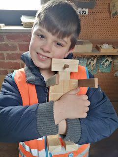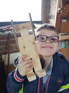 Er was eens...een klas uit De Zon, genaamd de Lego's, die leerde over sprookjes. Op een dag vertelde juf Delphine hen het verhaal van Pinokkio, die houten pop. De kinderen vonden het een heel mooi sprookje, ze wilden meer weten over 'hout'. De juf vertelde hen elke dag iets, waar het hout vandaan komt, hoe de delen van een boom noemen, wat je allemaal kan maken uit hout,... De kinderen wilden heel graag zelf op ontdekking gaan en experimenteren met dat hout. Daarom trokken ze op een dag naar het atelier van timmerman Daniël. Samen met hem mochten ze aan de slag met zijn werkmateriaal. Er werd gehamerd, gelijmd, getimmerd, gezaagd,... Het resultaat mocht dan ook gezien worden, elke leerling ontwierp een echt Pinokkio! En de Lego's? Die keerden heel tevreden terug naar hun klas en ze leefden nog lang en gelukkig!
