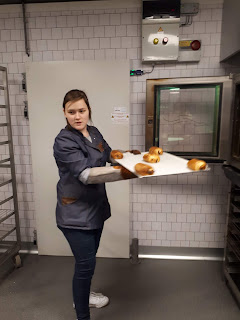 We mochten eerst een kijkje nemen bij Sara in de bakkerijafdeling.