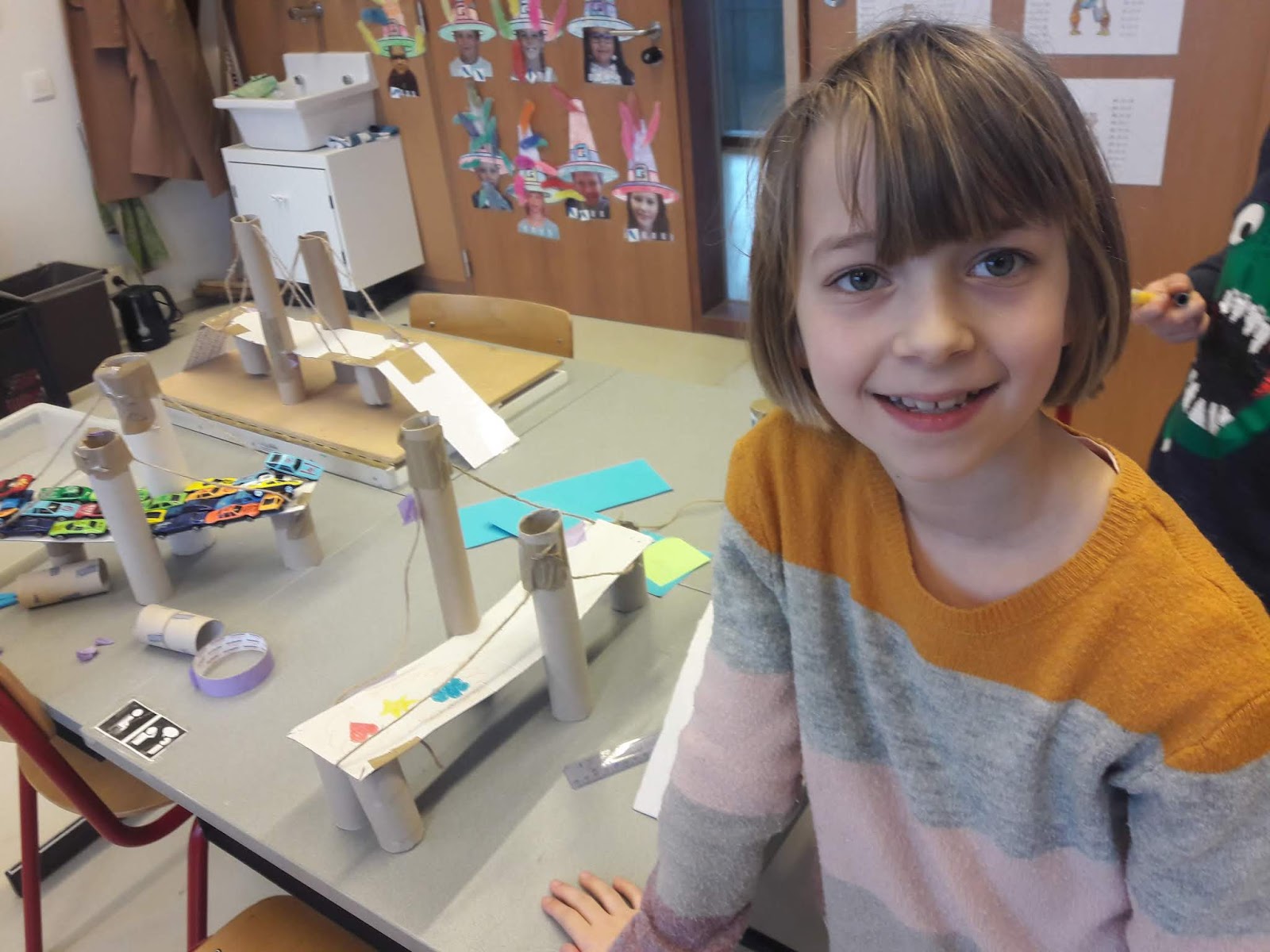 Hoe bouw je een stevige brug? Als echte wetenschappers mochten de mikado's onderzoeken op welke manier we een sterke en stevige brug bouwen. Samenwerken, uitproberen, onderzoeken, ontdekken en uittesten kwamen allemaal aan bod tijdens een heus experiment.